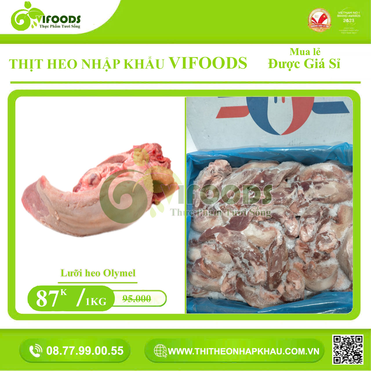 Công ty VIFOODS tự hào là đơn vị phân phối sỉ lưỡi heo đông lạnh Olymel chính hãng nhập khẩu từ Canada. Chúng tôi cam kết cung cấp sản phẩm đạt chuẩn với giá thành cạnh tranh nhất.