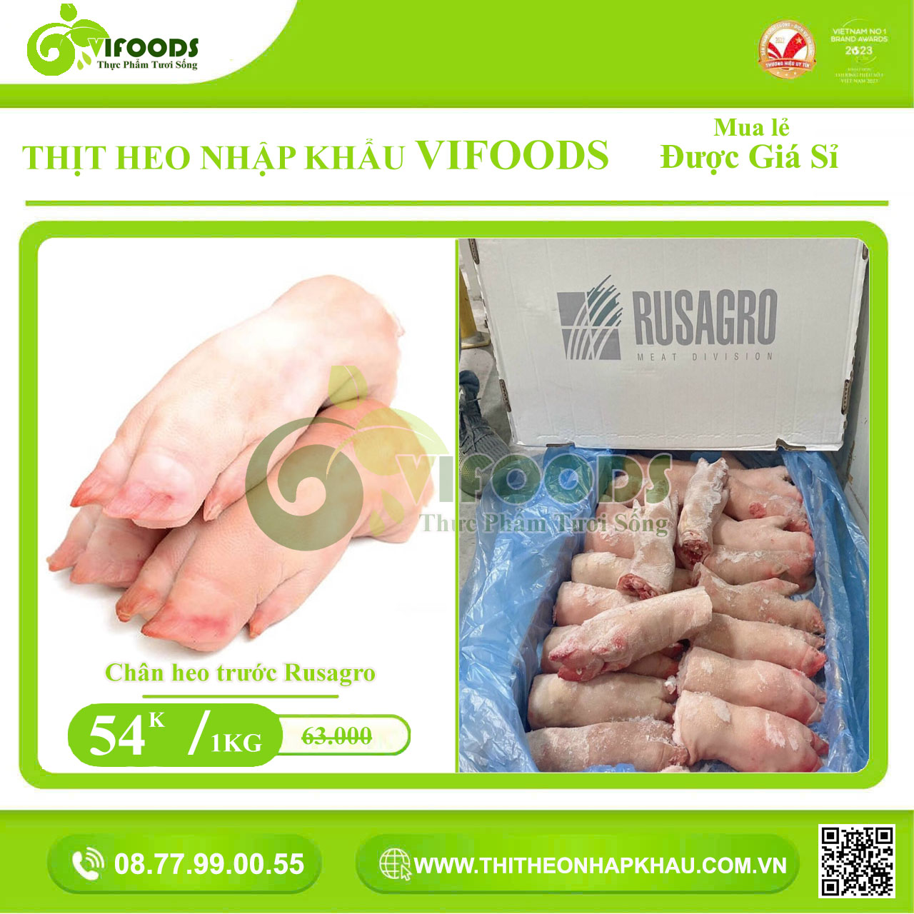 Chân Heo Trước Đông Lạnh Rusagro Nhập Khẩu Nga - Công Ty Vifoods Phân Phối